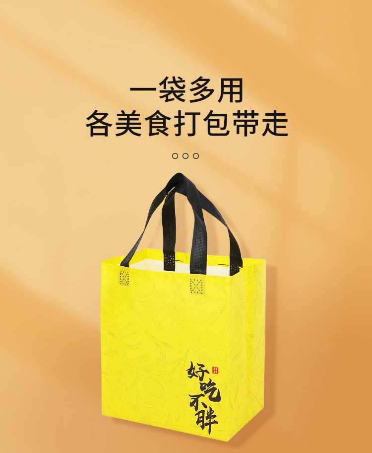 环保性:无纺布覆膜外卖袋是一种环保产品,客户在选择材质和设计时,应考虑到环保因素,尽可能选择可回收、可降解的材料。