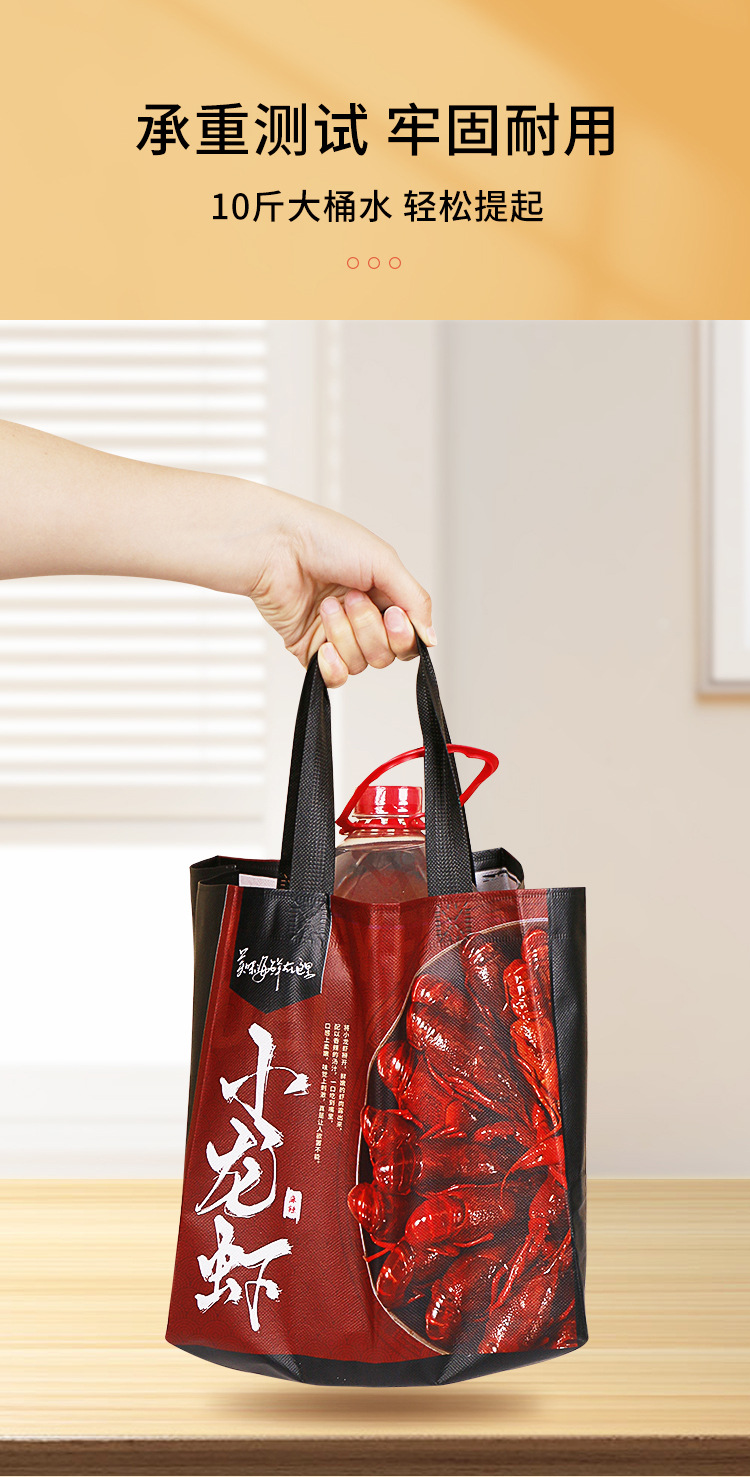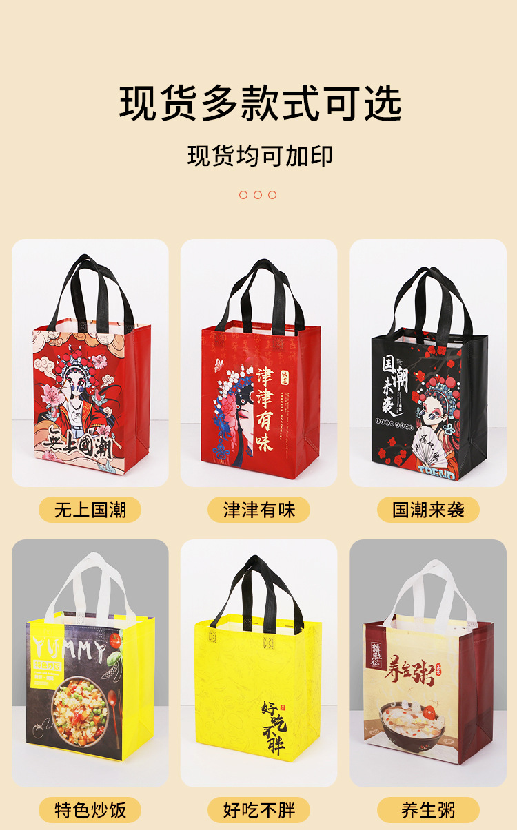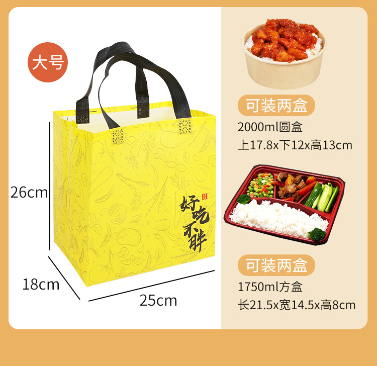 材质选择:无纺布覆膜外卖袋的材质有多种选择,如PP无纺布、PE无纺布、复合无纺布等。客户需要根据使用环境和要求选择合适的材质。